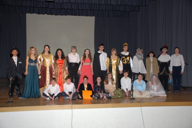 Τέλος μία επιλογή μαθητών από όλες τις τάξεις του κεντρικού σχολείου μας παρουσίασαν τη γαλλική πρωτότυπη έκδοση της Σταχτοπούτας σε μουσικό έργο το «EVER AFTER» στα αγγλικά, που εντυπωσίασε όλους με τα κεφάτα τραγούδια και τα τόσο σημαντικά μηνύματα του.
