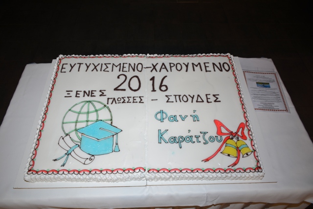 Όπως κάθε χρόνο έτσι και φέτος πραγματοποιήθηκε την Κυριακή 14 Φεβρουαρίου 2016 στην ισόγεια αίθουσα εκδηλώσεων “Palladium” της πόλης μας, η εκδήλωση “Απονομής των 110 πιστοποιητικών Γλωσσομάθειας” και “Κοπή της Πίτας του 2016” των Κέντρων Ξένων Γλωσσών Φανής Καράτζου. Την εκδήλωση κόσμησε η ιδιαίτερη γραπτή αναγνώριση από τον εξεταστικό φορέα του Πανεπιστημίου του Cambridge για τη σημαντική προσφορά της κας Καρατζου στην εκπαίδευση στην αγγλική γλώσσα.